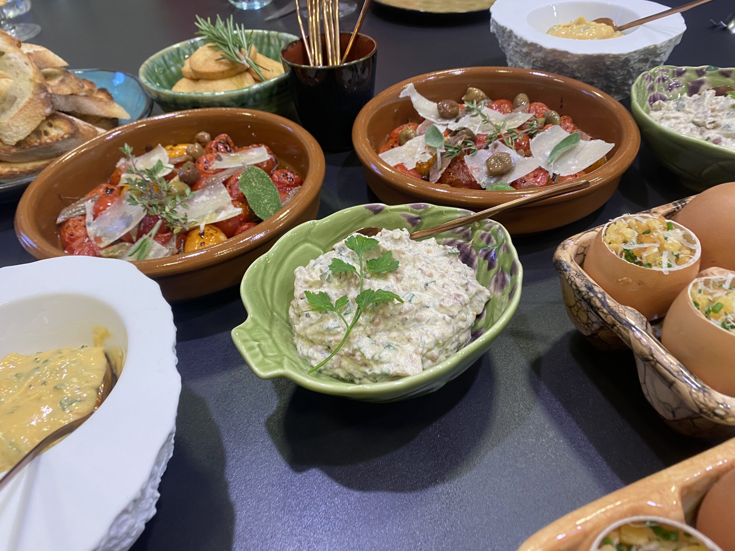 Mini Kefta d’agneau, sablé au parmesan, caviar d’aubergine à l’oriental, tartare de saumon, rillettes de sardines…… voici quelques exemples de bouchées qui accompagneront vos apéritifs dinatoires
